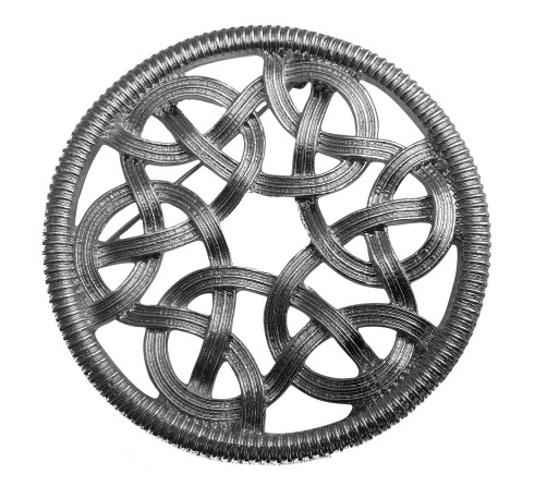 Broche de entrelazo celta de la Edad de Hierro. Si lo llevas con tu falda celta masculina, combínalo con un pin de entrelazos como el de la Cruz Solar.