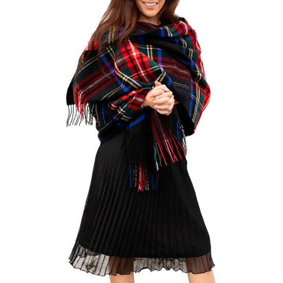 Chal (shawl) hecho en la misma tela de tartán en la que están confeccionados los kilts, una tela de lana acrílica, resistente y rústica al tacto, como a la antigua usanza.