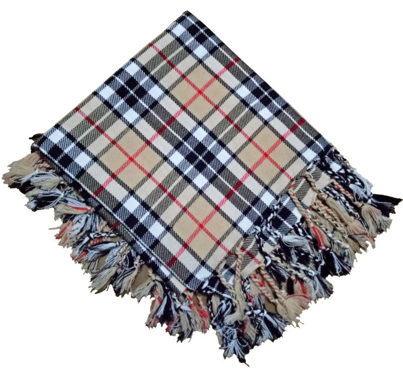 Hecho en la misma tela de tartán en la que están confeccionados los kilts, una tela acrílica de tacto y propiedades idénticas a la lana.